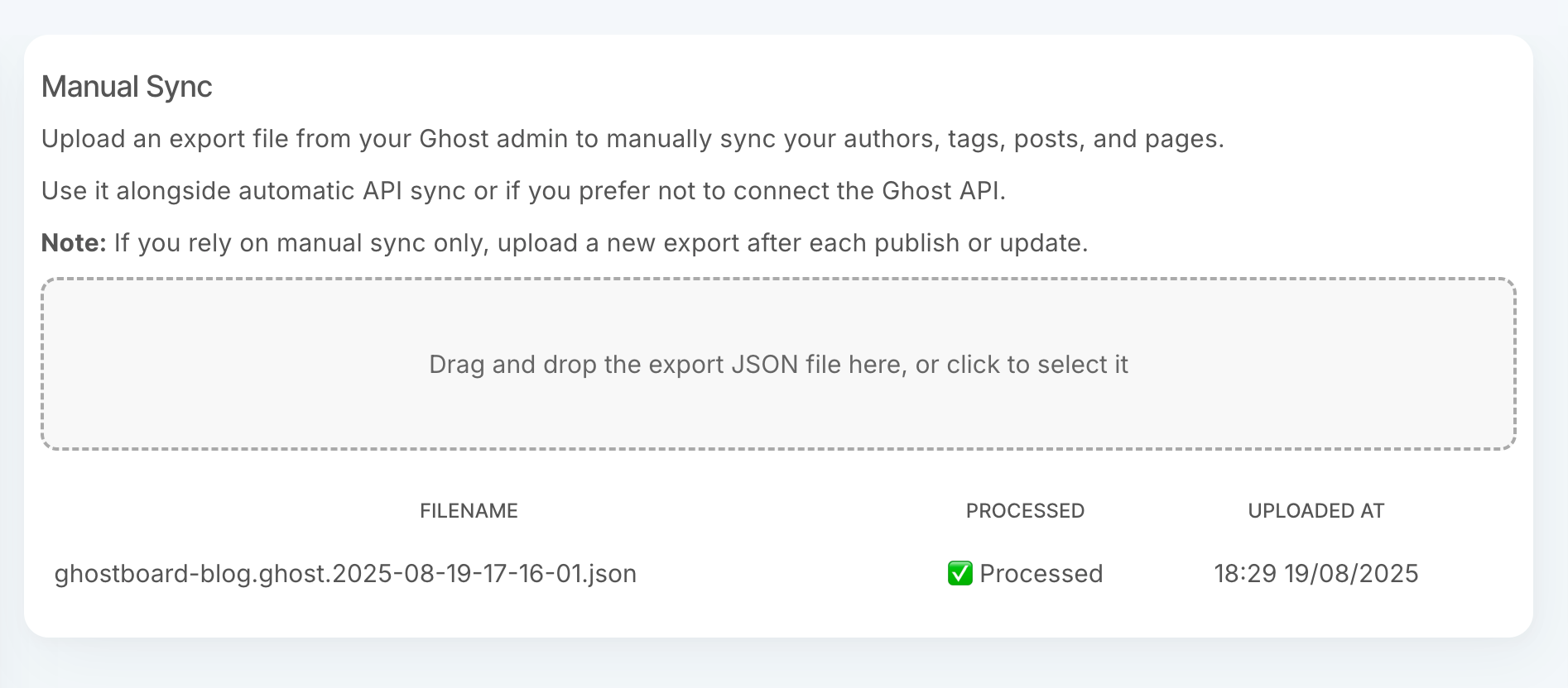 Manual Syncing into Ghostboard